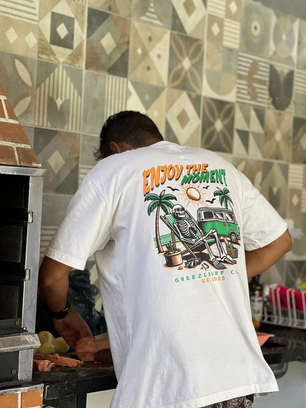 A camiseta Enjoy the Moment foi pensada para curtir cada momento unico seja qual for a sua vibe. É produzida com modelagem exclusiva e acabamento de extrema qualidade. O tecido passa por um processo especial de pré encolhimento garantindo que sua peça não encolha drasticamente como uma camiseta comum e tenha duração maior do que as demais. Utilizamos a melhor tecnologia para aplicação das estampas em DTF (Direct to film). Fabricada em 100% algodão com fio 30.1 penteado e gramatura de180 g/m²
