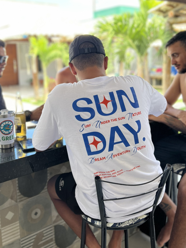 A camisetaSunday foi criada para quem busca o domingo perfeito, um domingo de surf, aventura e natureza.